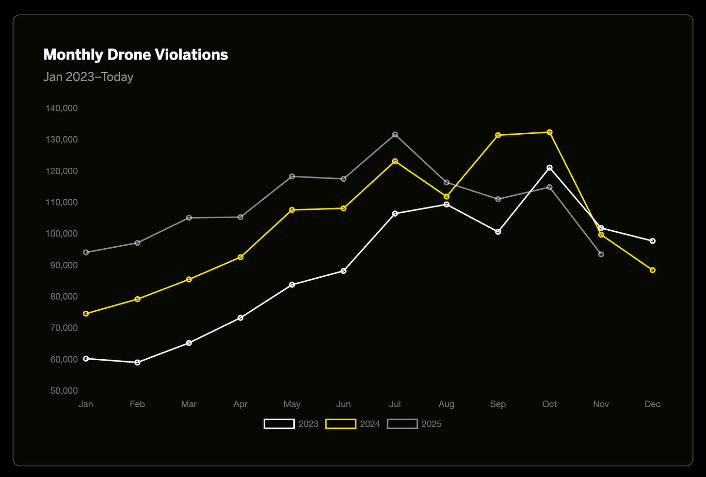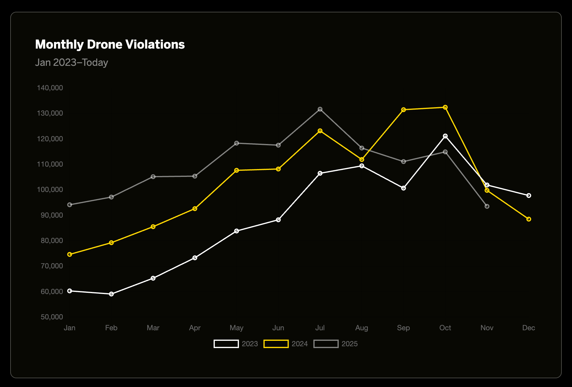 Worse: How do you react if unarmed reconnaissance drones which could just as well be armed constantly appear over your critical infrastructure and military installations? What about a border crossing of armed deep strike drones? What if they hit your civilians? What if the enemy adds a couple of stealth fighters armed with long-range cruise missiles and bombers to their border patrols? What if the stealth fighters violate your airspace without flight plans and with their transponders off?